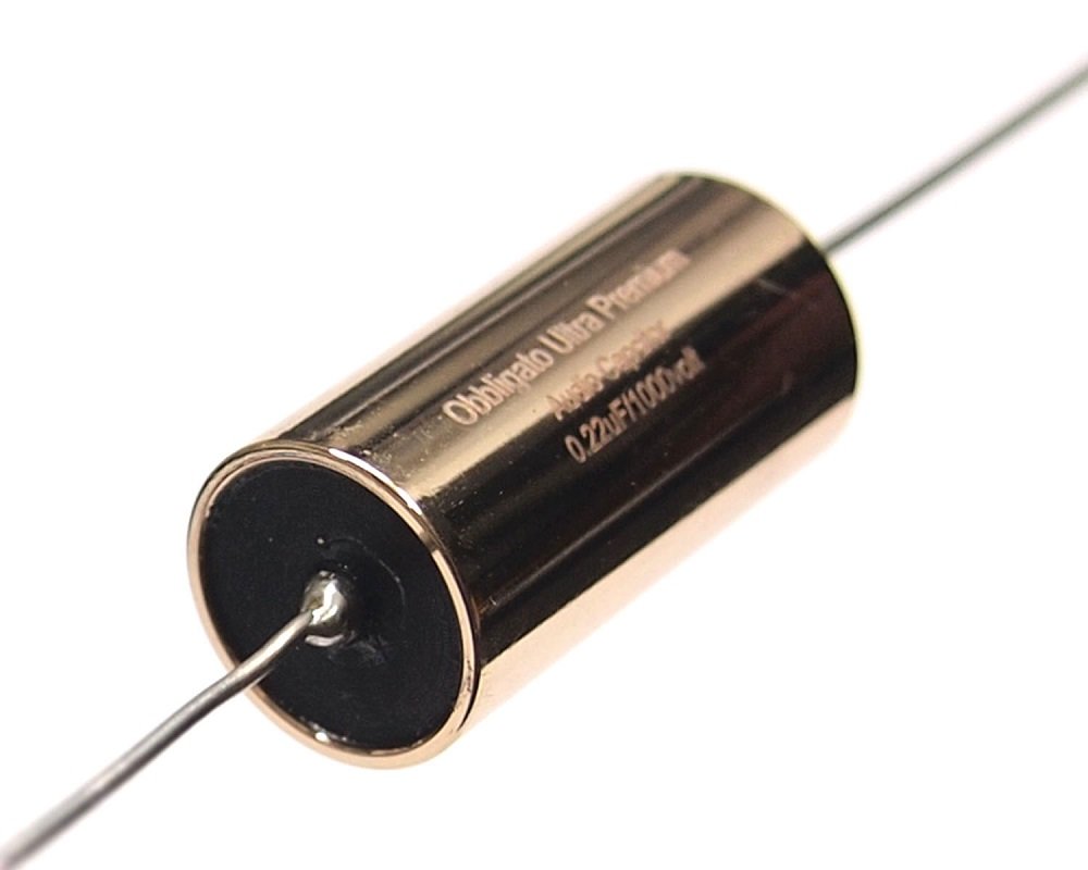 0.22uF/1000v Obbligato Ultra Film Capacitor Stock Status: In Stock $11.00 Quantity unit Add To Cart Description Better sounding than Obbligato Gold. Not only the 1000v rating allows use in many 211/845 circuits, but also the sound is smoother and base deeper. The metal case now is non-conductive treated.