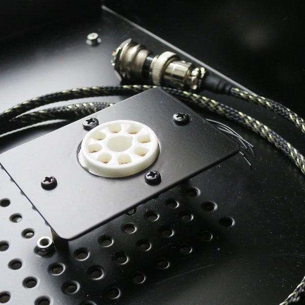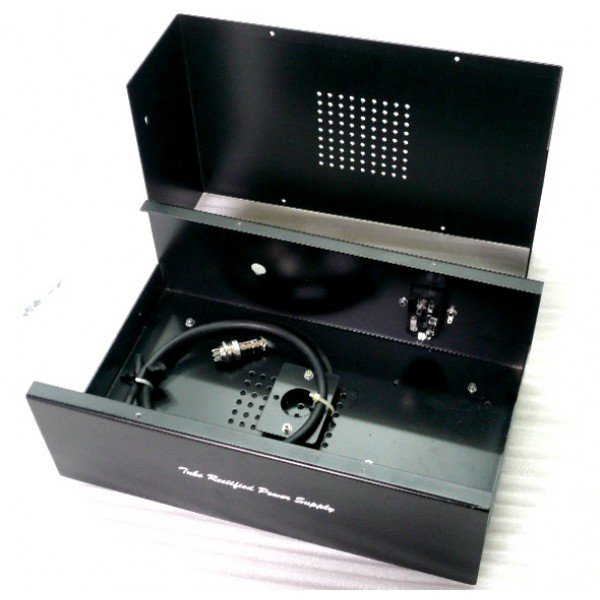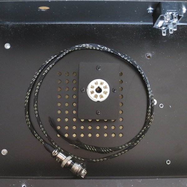Standard umbilical cable is 1M length. Bayonet socket is 8-pin or 7-pin, depends on stock availability. Power switch is on the IEC receptacle. The tube socket mounting plate fits octal sockets and the case is vented above and below the tube. Excellent for 5Ar4 etc.
